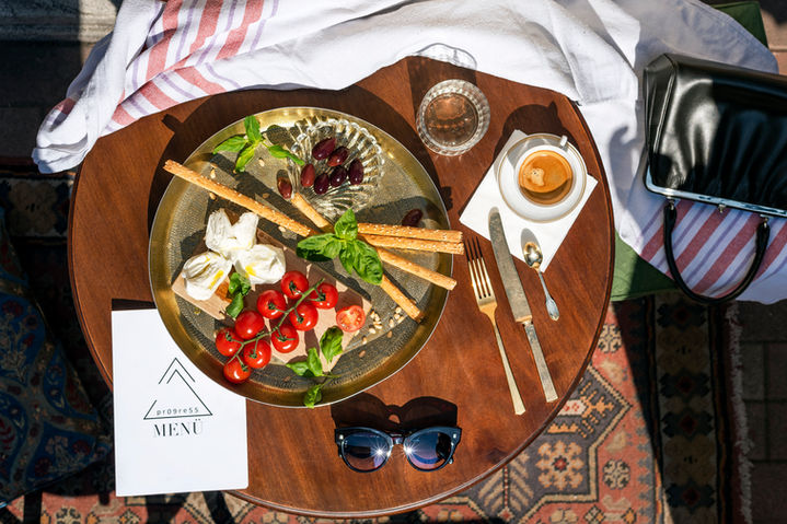 Pr09re55 concept store is a boho spot in Pozsonyi Street, furnished with preloved art deco tables, soft woven cushions and styled up by large neon decorations. To take photos of a tasting menu was inspired by all the accessories and serving tools Zita, the owner collected and treasured. The menu was put together with great care and dreamed-up by the hostess Zita Mészáros. As a stylist, my job was to restore the atmosphere of the small shop where Pozsonyi út "comes in" alongside the vintage pieces of the big fashion houses, acquaintances may come and go, but refined taste and elegance are constant guests.